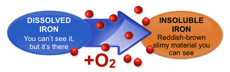 Ο σίδηρος μπορεί να περιέχεται στο νερό σαν διαλυμένη ύλη ή σαν αιωρούμενο ίζημα. Συνήθως η αφαίρεση του αιωρούμενου σιδήρου δεν είναι σύνθετη. Μπορεί να γίνει με μία μηχανική φίλτρανση σε χαλαζιακά πολυστρωματικά φίλτρα. Η αφαίρεση του διαλυμένου σιδήρου γίνεται μέσω οξείδωσης, καθίζησης και μηχανικής φίλτρανσης των αιωρημάτων. Ο διαλυμένος σίδηρος σε δισθενή μορφή μπορεί να μετατραπεί μέσω οξείδωσης σε τρισθενή μορφή. Είναι σημαντικό το ΡΗ να είναι ίσο ή μεγαλύτερο από 7,00. Εάν το ΡΗ είναι μικρότερο είναι δύσκολη η καθίζηση του σιδήρου.