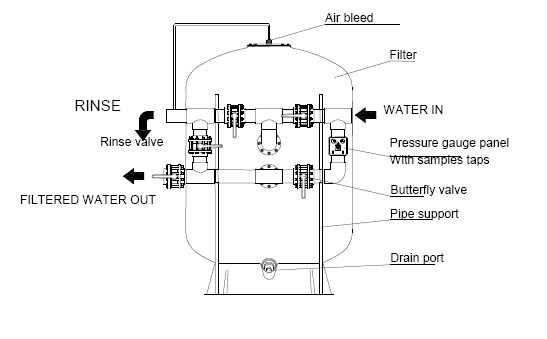 Αποτελούνται από ένα κυλινδρικό δοχείο μεταλλικό ή από fiberglass, το οποίο εσωτερικά φέρει ειδικούς διαχύτες προκειμένου να επιτυγχάνεται η σωστή διασπορά του νερού. Το χαλαζιακό στρώμα αποτελείται από περισσότερα διαφορετικής κοκκομετρίας στρώματα, τα οποία ξεκινώντας από το κάτω μέρος είναι 8 – 15 mm,